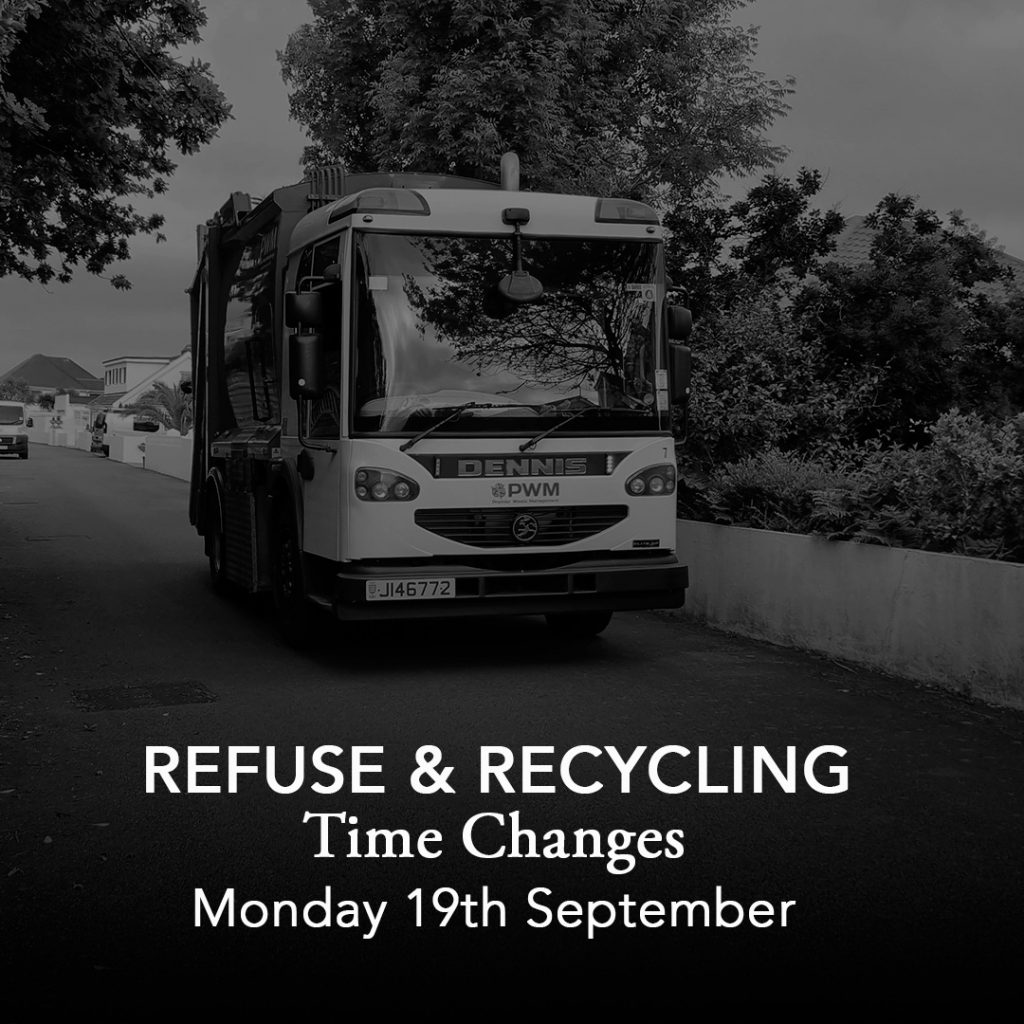 Premier Waste Management will be varying the timings of some of the refuse and recycling collections on Monday 19th September in the vicinity of St Aubin. The general waste and glass will be collected as normal with the recycling done between 8:00am and 10:00m (normally between 11:00am and 1:00pm). There will be minimal knock on effect for the remainder of Monday collections.